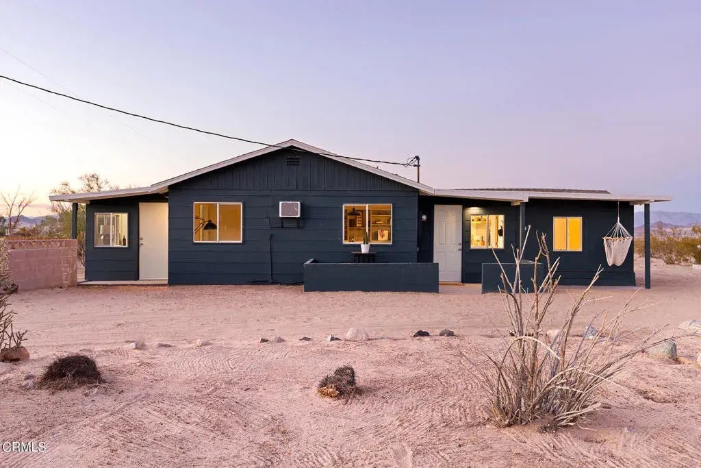 Welcome to 5995 Primrose Ave, a serene creative retreat located in Twentynine Palms. Just 10 minutes from the Marine Base, and equally close to the Joshua Tree National Park entrance, this 3-bedroom, 2-bathroom home is nestled on 5 expansive acres, offering panoramic desert views in every direction. Built in 1955, the home exudes mid-century charm with character details such as concrete floors, built-in cabinetry, and an original pink porcelain tub and sink. The open-concept living area flows seamlessly into the kitchen, which features new butcher block counters, stylish backsplash, and ample exposed shelving. The large primary suite opens to a private rear patio and boasts a walk-in closet and an en-suite bathroom. The home has been freshly painted inside and out, and the roof was recently redone. Additional highlights include a bonus room--perfect for a home office--a separate laundry room, and plenty of storage space throughout. The property is conveniently located near local favorites like Kitchen in the Desert, grnd sqrl, and the Saturday Farmers Market. Whether you're looking for a weekend getaway or a full-time residence, 5995 Primrose Ave offers peace, privacy, and timeless appeal. The property has hauled water.