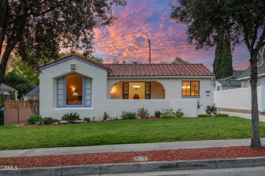 Three bedrooms plus den and a pool! Welcome to this beautifully restored Spanish home in Northwest Glendale which is in close proximity to Kenneth Village. The owner has taken extreme care in lovingly restoring this 1929 Spanish Revival home.The original textured walls have been maintained in the living room, dining room and halls. The beautiful original arch divides the large living room and the formal dining room with original hardwood floors.The home features three bedrooms and a den with a closet, which could be the 4th bedroom. There are two ensuite bedrooms with large closets, each with updated custom cabinets and tiled bathrooms. There is a third custom tiled bathroom off the hall. The spacious primary bedroom with a large custom closet looks over and has access to the backyard and the beautiful pool area. Fireplace in the living room and primary bedroom are both decorative. The updated kitchen has recessed lighting and a pantry with pull out drawers. Soft close cabinets. Top of the line appliances, which include a built-in Sub Zero refrigerator, gas Wolf range, electric Wolf oven, Bosch dishwasher and Bosch washer and dryer. The sunny breakfast room overlooking the front yard is an ideal space for morning coffee. The backyard has a covered patio with custom arches overlooking the sparkling pool with a Baja bench. This is a great area for entertaining and gathering.Two car detached garage with storage room, Updated electrical panel, tankless water heater. Come and visit this truly classic traditional Spanish Glendale jewel.