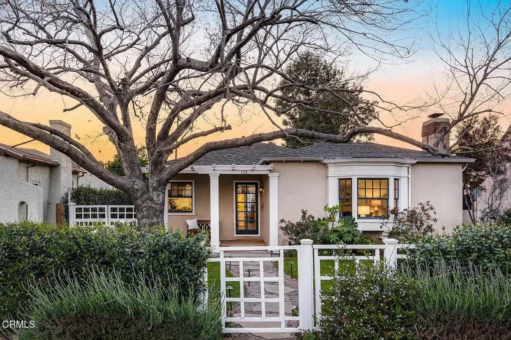 Located in picturesque North San Gabriel just south of San Marino, this charming 1939 cottage has been extensively updated and expanded while retaining all of its period charm. The professionally landscaped front garden is enclosed by a distinctive Chippendale-style fence privatizing the space and suggesting the graceful elegance that lies beyond the front door. The entry of the home is open to both the living room and dining area. The living room is highlighted by a bay window that overlooks the lush front garden and a stately fireplace with preserved original tile surround. An adjacent dining area is well-scaled with a built-in buffet and features a French door to the side dining patio. The adjacent kitchen is remodeled with ample cabinet space, quartz counters, stainless steel appliances, and a charming breakfast nook. There is a practical side door that allows for access directly from the driveway - perfect for unloading groceries! Beyond the public rooms are 3 bedrooms and 2 bathrooms including the primary suite. All 3 bedrooms feature French doors for direct access to the side and back gardens. The primary suite is very spacious with room for a king-size bed, a substantial walk-in closet, and a beautifully appointed full bathroom with clawfoot tub, oversized shower and a separate water closet. The French door in the primary suite leads directly to the handsomely manicured backyard with two raised beds, a verdant lawn, numerous fruit trees, and a detached 2-car garage. The garage has been finished and used by the present owners as a bonus room, the perfect extension of