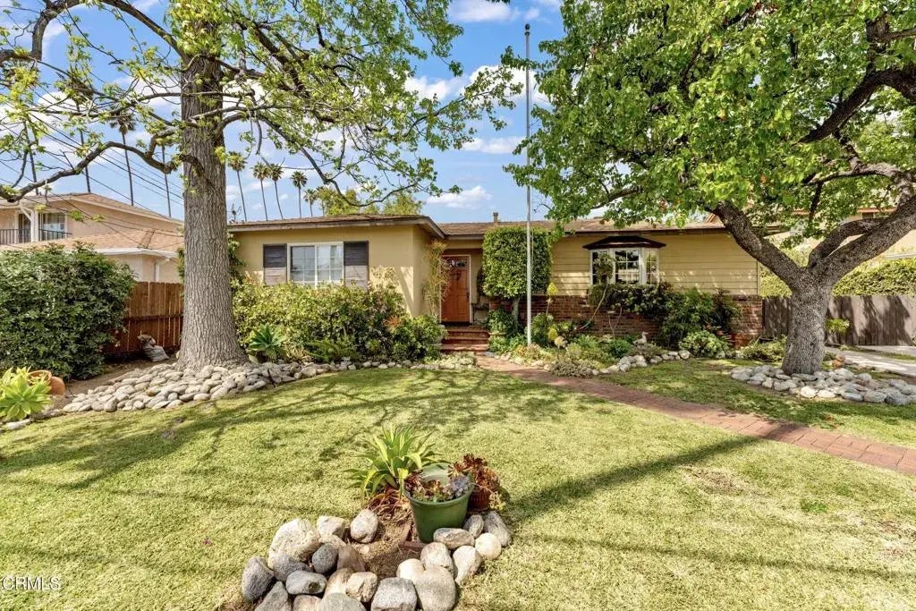 Welcome to this charming 1955 Traditional Arcadia home! This delightful property offers blend of comfort and convenience, with 3 bedrooms and 2 bathrooms spread across 1,407 square feet of living space. As you step inside, you'll be greeted by beautiful hardwood floors that lead into a spacious living room. You will notice the homes beautiful brick woodburning fireplace and sliding glass doors that opens up to a beautifully lush and landscaped backyard.The kitchen features oak cabinetry, tile counters and backsplash and a beautiful bay window over the double-sided sink giving you a view of the tree lined front yard. The space is fully equipped a French door refrigerator, dishwasher, electric cook top, oven and microwave. The kitchen offers a multitude of eating areas such a breakfast bar and quaint dining space. The kitchen leads into the homes laundry room and pantry area offering an abundance of storage options. The home's master suite features a private three-quarter bathroom and sliding glass doors leading to the backyard and patio. The additional two bedrooms are accompanied by a full bathroom with a shower and tub combination and a single vanity. The outdoor space is a true oasis with lush landscaping, pool and spa and multiple patio areas perfect for lounging. The expansive lot size of 7,392 square feet provides plenty of space. An oversized detached, 2-car garage adds convenience and ample storage. Whether you're a first-time homebuyer or looking to downsize without sacrificing comfort, this home offers everything you need and more!