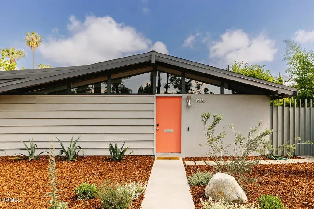 This sensitively restored 1954 post and beam home was originally designed by Palmer & Krisel, AIA and remains an excellent example of the architects' work. The walled pool property is positioned centrally in the celebrated mid-century modern neighborhood of Corbin Palms, where the architects William Krisel and Dan Saxon Palmer had their first significant collaboration with the Alexander Construction Co - designing and building 287 modern homes here. This architect/contractor collaboration building entire neighborhoods made good design accessible. They later went on to create famed modernist Palm Springs tracts including Twin Palms, the Sandpiper Condominiums, and the Racquet Club Road Estates. William Krisel liked the Corbin Palms project so much, he and his wife bought one of the homes several blocks away on Jumilla for themselves. 19733 Victory Blvd features many of the original design features that made these homes unique - exposed beams, open plan, broad overhangs, large windows, and clerestories that celebrate the low gable roof. Recent updates to the property include an insulated tongue and groove ceiling, remodeled pool and garden, custom cabinetry, new flooring, as well as plumbing and electrical upgrades. This four bedroom, two and half bath home is larger than the typical Corbin Palms properties because a den was added in the 1960s that seamlessly matches the original design. Between the Palmer & Krisel architecture and the walled pool garden, this property brings the spirit of Palm Springs right here to our great city of Los Angeles.