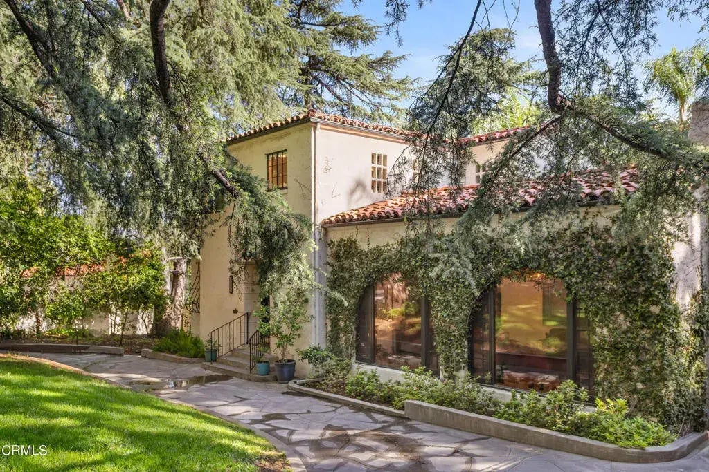 Nestled on a gorgeous, tree lined street in the coveted Deodar area of La Canada Flintridge, this .64 acre property offers a lease opportunity in the Blue Ribbon La Canada public school district. Originally built in 1927, the Spanish Revival home features authentic detailing inside and out. This gorgeous Estate property features the main house, as well as a 1-bedroom guest house with full kitchen, living room, full bathroom and office. The large rear yard is perfect for outdoor entertaining with a sparkling pool and built-in bbq. The first floor includes a large living room with an authentic adobe fireplace; a charming kitchen with breakfast nook featuring a built-in sub zero fridge, beautiful glass door cabinets, and a vintage range/oven; a cozy den with full wet bar and wood paneling; a spacious formal dining room; a powder room; a full laundry room including washer and dryer; and a sun-drenched family room that opens to the rear patio. The second story features 3 bedrooms, including the primary suite with walk-in closets and a spacious en suite bathroom, as well as a full hall bathroom and abundant storage space. A small studio bedroom with charming en suite powder room is located on the lower level, with a separate entrance off the patio. The property includes several varieties of fruit trees, palms and other mature trees that span the property. This truly is a one of a kind property! Pets considered, with additional security deposit. Property offered either unfurnished or partially furnished as shown. Apply here: https://apply.link/FPFXVNo