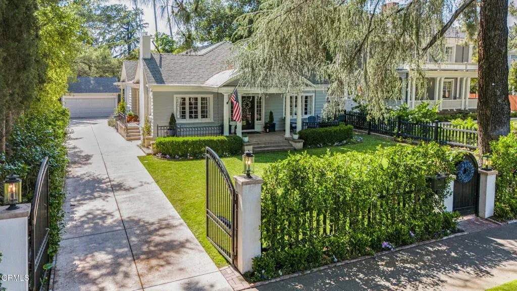 Colonial Soul Meets Modern Living in Bungalow Heaven. Nestled in the heart of Pasadena's iconic Bungalow Heaven Landmark District, 863 N Hill Ave is a masterful blend of 1920s charm and thoughtful modern upgrades. This 4-bedroom, 3-bath architectural treasure offers light-filled living, designer updates, and the kind of backyard dreams are made of. From the moment you step onto the storybook front porch, you're wrapped in its classic Colonial Revival character--crown moldings, redone hardwood floors, a Batchelder fireplace, and character built-ins that have stood the test of time. The formal dining room flows effortlessly into a side patio, ideal for morning coffee or evening libations. A bright, spacious kitchen with an eat-in breakfast nook sits at the center of the home, with access to a discrete large laundry area down the hallway for practical everyday living. The front bedroom connects to a powder room and full bath, perfect for guests or a home office. Two more bedrooms feature walk-in closets, built-ins, and architectural detail throughout. At the back of the home, the expanded primary suite is a true retreat--cathedral ceilings, a walk-in closet, and a spacious spa-like bath overlook a lush, private backyard. Outdoors, enjoy a fully landscaped, entertainer's dream yard with mature shade trees, a log cabin playhouse, and fruit trees. There's an outdoor pergola for twilight BBQ's and respite, and an additional covered sitting area with a ceiling fan for dining Al Fresco or farm to table gatherings. The garden beds are stocked with herbs too. Behind the private automa