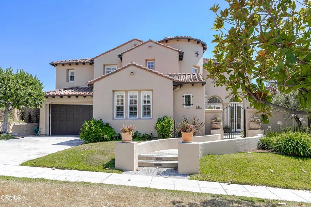 Set against the foothills of Altadena, this Tuscan inspired home has it all! Located in the gated community of La Vina, this property exudes old world charm starting at the front courtyard with its pebbled mosaic design and flows into the formal entry hall. The formal living room is anchored by a fireplace, has soaring ceilings, large windows and french doors that open to the courtyard. The spacious formal dining room is nearby and offers views overlooking the backyard. An open concept kitchen with a large island, walk-in pantry and breakfast area is adjacent to the family room. The family room shares a pass through fireplace with the breakfast area and opens up the backyard, ideal for entertaining. A flex room downstairs makes for an ideal office or library. The 4th bedroom is downstairs as well, with an ensuite bathroom. Completing the main floor is a powder room, laundry room and direct access from the garage into the house. Upstairs is a loft area that makes for a great den or playroom and has a built-in desk. Two bedrooms are attached to the loft area and share a Jack and Jill bathroom. The primary bedroom suite is the jewel upstairs featuring a generous bedroom, built-in dresser, screened patio, and views overlooking the backyard and beyond. The primary ensuite bathroom has two sinks, separate shower and tub, sitting room and oversized walk-in closet. Keeping with the Tuscan style, carved wooden doors, accent lighting and grapevines growing over the patio add a special touch. The backyard hosts two patio areas, one covered patio off the family room and an additional p