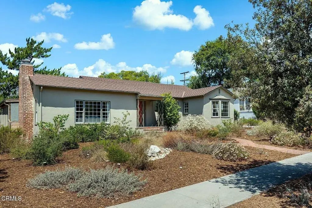 Calling all nature lovers and historic home aficionados - this eclectic, character-rich 1936 Traditional in Glendale's historic Montecito Park is a delight. Sited back from the sidewalk behind a handsome native garden, and complemented by views of the foothills in the background, this home whispers in a palette of earthy tones that echo its surroundings. A welcoming brick path with its unique navette-shaped center planter draws visitors in, past blooming Saint Catherine's lace to the home's covered front porch, flanked by original wrought iron lattice decorative grilles. Inside, gleaming white oak hardwood floors flow from the entry into a generous living room with decorative fireplace and beamed ceiling. Natural light flows through all spaces here, streaming in through large windows in the living room, formal dining room and kitchen. With its sage green cabinetry, custom-tiled countertops, backsplash and checkerboard floors juxtaposed with stainless steel appliances and accents, the kitchen strikes a perfect retro-modern balance. A sunny laundry room with pantry storage and 3/4 bath just off the kitchen are convenient, and benefit from a side door direct to the driveway...don't miss the tiny milk delivery door, a fun reminder of decades gone by. Three comfortable bedrooms on the west side of the home, one currently used as a den, enjoy flora-filled views of the backyard garden, and access to a second, artfully renovated bath with handsome plaster walls, walk-in shower and custom tile floor. Outside, find spaces to unwind and entertain in the shade in the covered brick pati