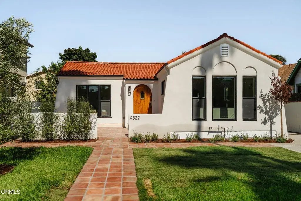 Set on a palm-lined street in one of L.A.'s most culturally rich and historic neighborhoods, 4822 6th Avenue is a 3-bed, 2-bath, 1574 sqft 1926 Spanish Revival home, reimagined by AVDB Construction for modern living while honoring its architectural soul. As the breeze moves through the palm trees like waves, the rhythm of Los Angeles living greets you before you even step inside. Curb appeal shines with a sand finish stucco exterior, traditional arches, and Saltillo tile-lined porches and walkways. Inside, the home flows with European oak floors that add warmth and continuity throughout. The living room welcomes you with abundant natural light and a smooth plaster fireplace that sets a warm, grounded tone. A generous dining room flows effortlessly into a show-stopping kitchen featuring custom white oak cabinetry, book-matched porcelain countertops, and a sleek Bosch appliance package, blending modern performance with timeless design. Two spacious bedrooms sit off the main hall, both bright and airy with new dual-pane casement windows. The hallway bathroom offers spa-like vibes with Luna Arc white subway tile, Born Terracotta matte porcelain floors, and a custom arched tub enclosure finished in smooth hand-applied plaster. The private primary suite in the rear features a curbless walk-in shower with linear drain and Parma Cotto brown star tile floors, giving it both beauty and function. Outside, you'll find new landscaping and irrigation systems in both the front and back yards. The detached garage offers endless potential, ideal as a creative studio, gym, or future ADU conv