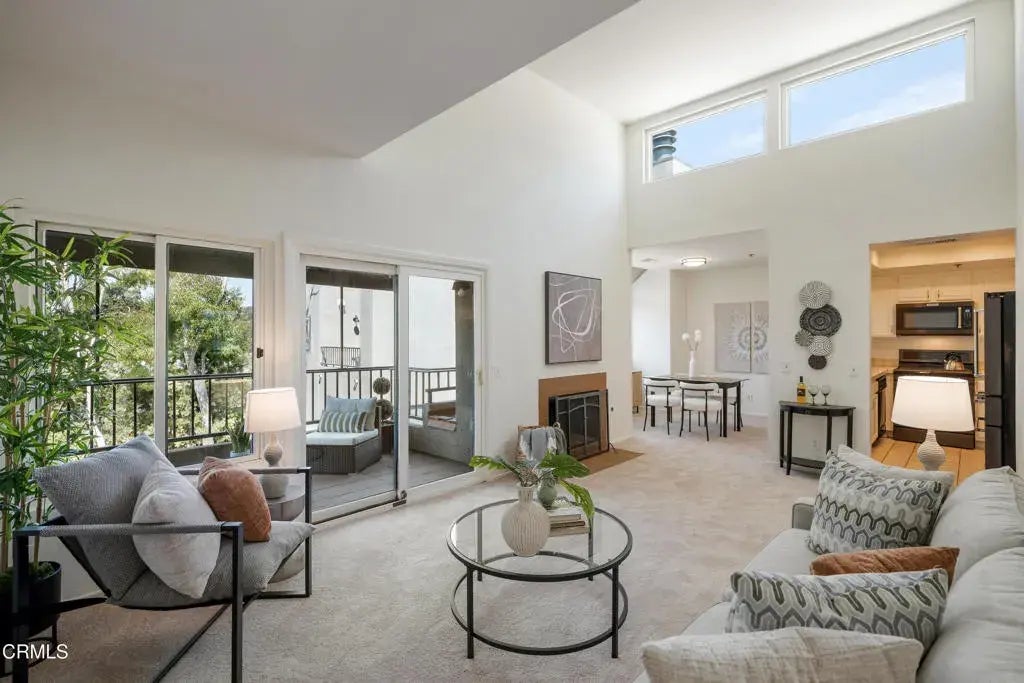 Located in a secure building, this bright and inviting, light-filled top-floor unit blends comfort, style, and convenience. A tile entryway leads into freshly carpeted living spaces. To the right, a spacious bedroom features a large closet, dual-paned windows, and a solar tube for abundant natural light. A pocket door connects to a full guest-accessible bathroom with a single-sink vanity and a tub/shower combination. To the left of the entry, the primary suite offers new carpet, a built-in closet system, and an ensuite bath with an oversized floor-to-ceiling tiled shower, single-sink tiled vanity, and linen cabinets. In the hallway, a sliding mirrored door reveals a full-size stackable washer and dryer and storage shelving. The living room boasts vaulted ceilings where sunlight pours in through clerestory windows, creating a warm, uplifting atmosphere throughout. A sliding glass door from the living room leads to a spacious balcony, ideal for morning coffee, evening wine or dining al fresco. Adjacent to the living area, two skylight windows can be found in the dining area allowing more natural light to fill the space. The kitchen impresses with recessed lighting within a tray ceiling, quality KitchenAid appliances including a 5-burner gas range with a matching microwave and refrigerator. A pass-through counter to the dining area, makes both everyday meals and entertaining a joy. Moments from Pasadena City College, Caltech, the Metro Rail, and all of Pasadena's dining, shopping, and cultural attractions, this home offers the ideal combination of location and livability.