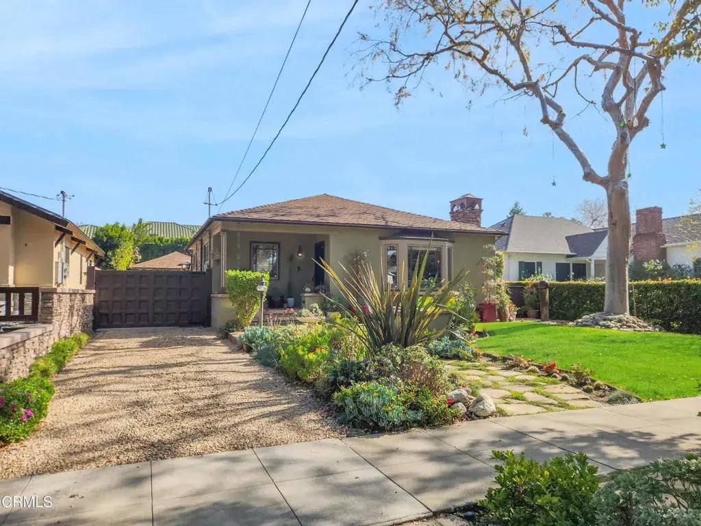 Welcome to 1016 S. Euclid, a charming and meticulously maintained, and mostly furnished, residence available for lease. This home offers a perfect blend of modern amenities and classic style. This single-level home begins with a beautifully landscaped front yard and a gravel driveway with gate, ensuring both privacy and security. Step inside to discover a bright and open floor plan, with stunning hardwood floors that flow throughout the main living areas. The spacious living room is the heart of the home, featuring a beautiful stone fireplace that adds warmth and character. Large bay windows flood the room with natural light. The open kitchen is a chef's dream, boasting rich, dark wood cabinetry and unique green-hued granite countertops. A large center island provides ample space for meal preparation and includes a breakfast bar with seating. High-end stainless steel appliances, including a professional-grade gas range, a built-in refrigerator, microwave, and espresso machine are integrated perfectly into the design. The open concept continues into a cozy family room area, perfect for movie nights or casual gatherings. The bathrooms feature warm, earthy tones, with tile walls and a wooden vanity that complement the charm of the home. Wooden beams on the ceiling add a rustic and cozy feel to the space. The backyard is an entertainer's paradise, offering a private and expansive outdoor living space. A large patio area features a stunning stone fireplace, perfect for gathering on cool evenings. String lights overhead create a magical ambiance for al fresco dining. The lush, gr