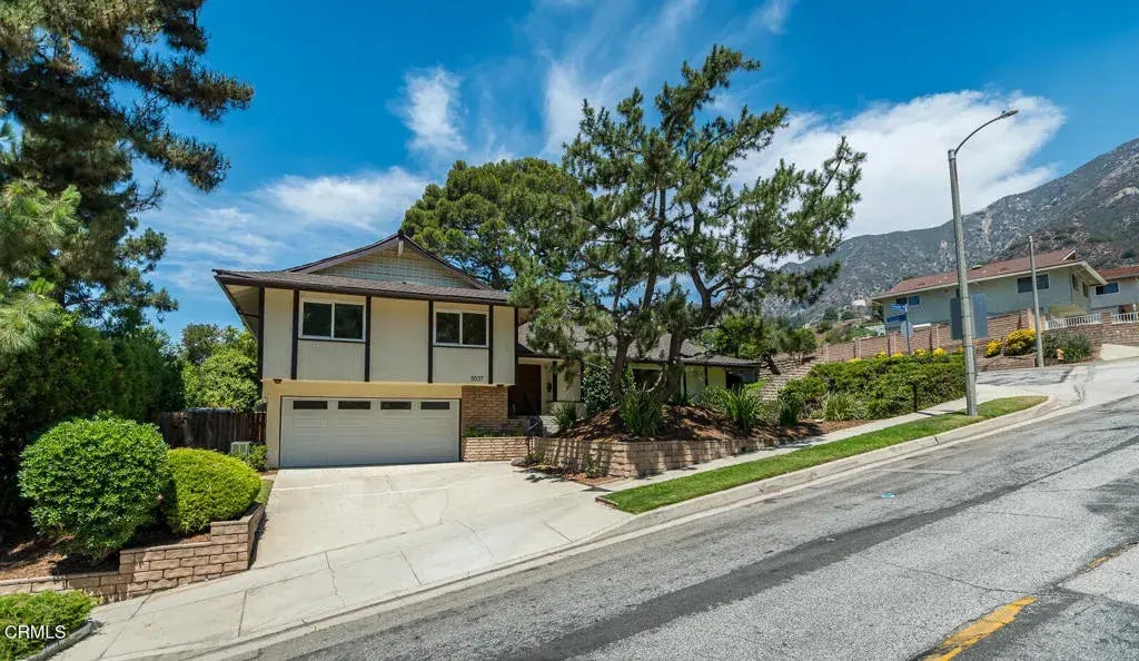 Set in the highly sought-after Pinecrest neighborhood, this stylish 4-bedroom, 3-bath home offers 2,292 sq ft of well-maintained living space on a generous 10,742 sq ft lot. Built in 1965, the home showcases timeless Mid-century architectural details--clean lines and natural elements, large picture windows, and classic parquet wood flooring. This home is ready for reimagining, or move-in ready! Inside, you'll find a spacious layout designed for comfort and function. The large living room flows seamlessly into the dining room, while the kitchen--complete with a breakfast bar, chic stone fireplace, and direct access to the patio--serves as the heart of the home. A flexible downstairs guest suite with separate access can also function as a family room, home office, or creative studio. Retreat upstairs to the spacious primary suite, and two additional bedrooms with hall bath, offering both privacy and practicality for family or guests. The sprawling flat backyard with covered patio is perfect for entertaining or relaxing in private, and there's plenty of space for a pool or play equipment. There is ample storage throughout the house and in the convenient, attached two-car garage. Located close to local parks, shopping, and award-winning La Crescenta schools, this architectural gem offers the perfect blend of style, space, and convenience.