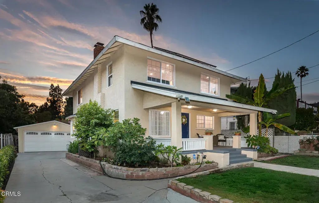 A thoughtfully landscaped front yard with succulents and fruit trees introduces this Pasadena bungalow, blending timeless character with modern updates. The welcoming covered porch opens to a spacious living room anchored by a fireplace and filled with natural light from large windows. Oversized pocket doors lead to the formal dining room with built-in cabinetry, creating a warm and inviting setting. An arched opening with a peninsula connects seamlessly to the expansive kitchen, equipped with stainless steel appliances, a window overlooking the outdoors, and direct access to the backyard.Just beyond the kitchen, a 3/4 bath with dual sinks and a separate water closet with shower opens to a large laundry room, combining function and convenience. A connecting hallway, accessible from both the kitchen and the living room, leads to a bedroom, the staircase to the second floor--illuminated by a large window--and access to the basement, currently staged as a media and creative studio with space for music, streaming, or recreation.The upper level offers four bedrooms, including a spacious primary bedroom. The additional bedrooms provide flexibility for family, guests, or a home office. A walk-in hallway closet and a 3/4 bath complete the second floor.Outdoor living includes an expansive fully covered paved backyard, thoughtfully designed as an all-weather retreat with generous space for lounging, dining, and play. A finished detached garage adds further versatility, ideal as a studio, workshop, or gym.Notable upgrades include solar panels for energy efficiency, a whole-house water