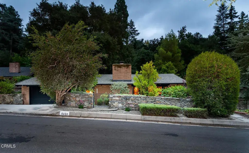 Lovingly cared for by the same family for over two decades, this adobe residence blends authentic heritage with timeless Spanish character & modern comfort. Located on a tree-lined street just moments from Palm Crest Elementary, the home offers the tranquility of a quiet neighborhood while remaining close to everyday conveniences. A stone front fence w/black iron gates opens to a landscaped courtyard w/stone walkways, a sitting area & mature persimmon & lemon trees, creating an inviting entry that reflects the home's natural connection to the outdoors. Inside, the residence opens to a dramatic great room w/pitched ceilings & exposed beams, setting the stage for generous & comfortable living. The living room serves as the heart of the home, w/French doors extending to the back patio for seamless indoor-outdoor flow. The dining area adjoins both the living room & kitchen, creating a versatile space for casual meals or formal gatherings. The updated kitchen is anchored by a large center island & a wide single-basin sink overlooking the front garden, complemented by cabinetry & modern finishes. A dedicated laundry room just beyond adds convenience. A powder room serves guests before double doors open to the private wing. Here, a hacienda-inspired hallway is lined w/expansive windows & French doors that overlook the central patio & backyard. The first bedroom is currently used as an office, followed by a second bedroom & a stylish 3/4 bath. At the end of the hall, the primary suite features French doors to the yard, a spa-like bath w/soaking tub & separate shower, a towel warmer