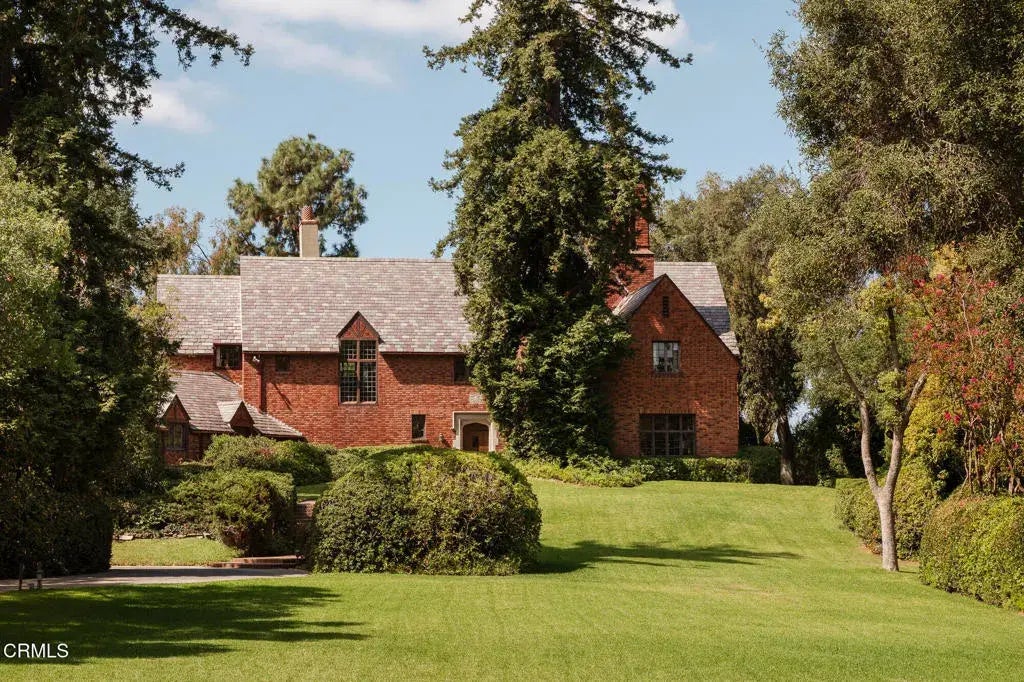 Graciously sited on 4.19 majestic acres in the coveted area of Southwest Pasadena, this grand architectural estate with lighted tennis court and pool with commanding views on the banks of the Arroyo ranks as one of the largest residential parcels in Pasadena. Positioned at the furthest point of the street for optimal privacy - the brick and iron gated entrance, vast lawn and motor drive provides a royal approach to the residence designed by the acclaimed architectural firm Johnson, Kaufmann & Coate. Slightly elevated, this stately 1924 English Period Revival masterwork of concrete, brick clad and a pitched slate roof acts as a prominent focal point for visitors. Period fenestration, distinguished by leaded-glass windows wash interiors with soft, natural light. The formal entrance hall provides convenient access to both the public and private spaces, as well as the discrete powder room, rear patio loggia and yard. Formal living room, anchored with its cast concrete fireplace encased in exquisite wood paneling, formed concrete ceiling beams and french doors to the outdoors. The adjacent den provides for more casual lounging - with copious natural light and fireplace. Opposite, the dining room also provides exterior access and direct connection to the butler's pantry and adjoining chef's kitchen - both updated for more modern living. Breakfast room, den, guest bedroom with bath complete the first level. An elegant U-shaped stairwell highlighted by an oversized tudor picture window leads to a second level landing and secret 'Elevette' elevator that rises from the floor. Spaciou