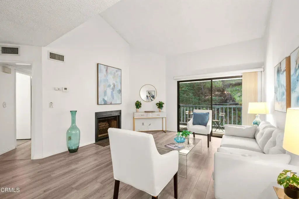 TOP FLOOR!! CATHEDRAL CEILINGS!! TREE-FRINGED GREENBELT VIEWS!! SERENE and TURN-KEY!! Situated in one of the best associations in idyllic Monterey Hills, this delightful top-floor 2BR/2BA unit in Chadwick Terrace features vaulted, cathedral ceilings, laminate flooring in the living areas, and oversize windows. A wall of windows floods the living areas with natural light. The living room features a crackling fireplace and opens onto an oversized balcony. Perfect for entertaining or just sitting and enjoying the view with your morning coffee!! Beautiful tree-fringed views of rolling hills will nurture your soul and wow your guests. The spacious chef's kitchen features abundant storage and a large skylight. Multiple dining options include flowing formal dining area and open concept breakfast bar. The primary suite features a huge walk-in closet. The second bedroom features windows on two sides and direct balcony access. Side-by-side laundry space located within the unit provides major convenience!!! HOA amenities include a shimmering swimming pool, spa, an open-air sundeck, and recreation room. Ideal for entertaining or just relaxing in the tree-lined outdoor oasis. Two deeded parking spaces. Perfect location for work or play; minutes from Highland Park's hip dining and leisure options on York and Figueroa, Historic Old Town Pasadena, DTLA, the USC Health Sciences Campus, and the Metro Gold Line. This unit is the Gold Standard in Monterey Hills!! Come take a tour while it's still available!!