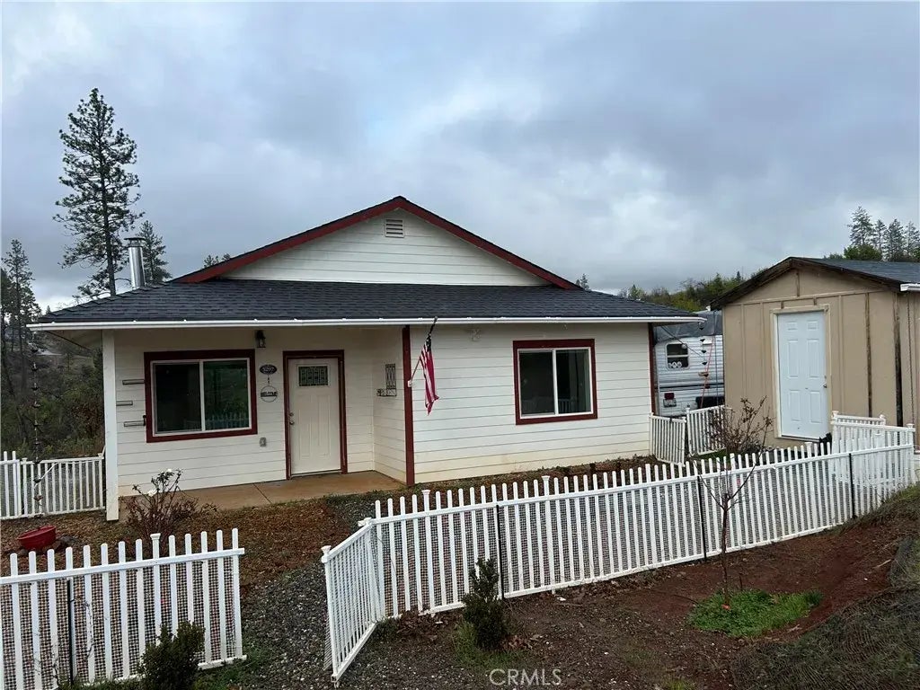 Private setting and like new one bedroom home on 2.99 acres with beautiful sunset and valley views built in 2023, vaulted ceiling in living and dining room with ceiling fans, mini-splits for heat and air plus a cozy woodstove, knotty pine cabinets with granite counters, laminate flooring in living, dining and kitchen, 12 x 10 finished storage building, 400 amp meter panel with 2-200 amp main breakers and additional distribution space in the main panel also previous home lost in the Camp Fire so with town of Paradise approval a second home could be built using that septic and leach field which should be inspected by a qualified septic company, water provided by Paradise Irrigation district. Beautiful mural on concrete retaining wall by Shane Grammer Owner will credit buyer up to $5,000 towards closing costs