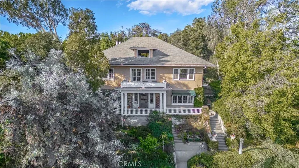 Nestled atop a lush knoll in the heart of Pasadena's most coveted neighborhood, this remarkable residence, designed in 1910 by J. J. Blick, epitomizes the elegance of the Arts & Crafts era. With panoramic views and within a short walk of the arroyo, this home offers a serene retreat with unparalleled privacy and tranquility. The impressive 3,927-square-foot home boasts a grand entry hall leading to a spacious living room, formal dining room, and a library, all adorned with natural wood finishes, crown molding, and built-in bookcases. The architecturally significant Grueby fireplace tiles and hand-carved mantelpiece corbels add a touch of historical charm, while the classic multi-paned Craftsman windows and box-beamed ceilings evoke a sense of timeless beauty. The home's ideal center hall floor plan includes six bedrooms and three and a half bathrooms, providing ample space for family and guests. The kitchen, complete with a butler's pantry, is perfect for culinary enthusiasts, while the upstairs linen and laundry rooms offer convenience and functionality. Additional amenities include a washer/dryer in the unit and laundry facilities in the building. Set on an expansive 18,197-square-foot lot, this property is a rare gem, offering spectacular natural light and views that enhance its special beauty. This Craftsman masterpiece is a treasure to be cherished by all who visit.