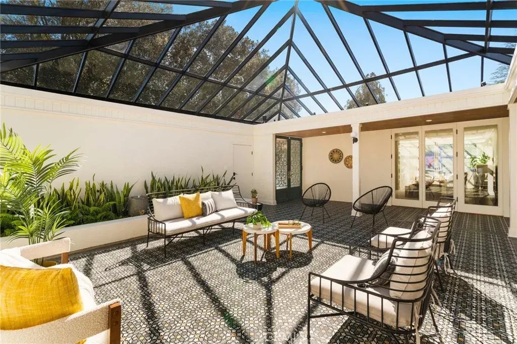 Architecturally Significant Mid-Century Modern Residence "The Cracker Jack House" Originally designed in 1961 by renowned architect Richard F. McCarthy, Jr., this renovated Pasadena residence blends historic charm with modern upgrades. Behind a private, gated entrance, this 4,215 sq. ft. (3,820 sq. ft. Main Residence & 495 sq. ft. Pool House) residence features expansive living areas, a fully updated guest house, and beautifully landscaped grounds. Main Residence is 3 bed/3 bath and Guest House is 1 bed/1 bath. At the heart of this mid-century residence, the sunlit atrium is a stunning focal point. Enclosed by solar-reflecting double-pane glass, this tranquil indoor sanctuary features a built-in fountain, custom lighting, and a dedicated 3-ton climate system, seamlessly linking the homes living spaces while flooding them with natural light. The spacious living and dining rooms have been reconfigured to maximize openness. Herringbone French oak floors, a restored stone fireplace, and a custom retractable TV mount enhance warmth and elegance. The chefs kitchen is both functional and stylish, featuring a Sub-Zero refrigerator, Wolf 6-burner range, Caesarstone countertops, custom alder cabinetry, and a Carrera marble backsplash. The primary suite is a private retreat with custom alder doors, a walk-in closet, and a spa-like en-suite bath featuring a freestanding soaking tub, heated floors, and Perrin & Rowe fixtures. Each bedroom has been updated with premium finishes, ensuring comfort and luxury throughout. Smart home features include CAT6 ethernet, Unifi networking, Sonos aud