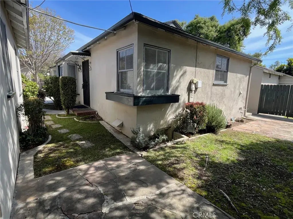 Tucked away in a peaceful court of just six cottages, this delightful one-bedroom, one-bath freestanding home offers the perfect blend of privacy, charm, and convenience. With no shared walls and a private patio ideal for barbecues and relaxing evenings, this cottage provides a warm and inviting atmosphere rarely found in similar homes. Step inside to a bright, single-level layout featuring a cozy living room adorned with a bay window, gleaming hardwood floors, elegant crown molding, and both wall and window A/C unit for year-round comfort. The separate dining area is enhanced by a charming built-in corner hutch, perfect for added storage and vintage appeal. The galley-style kitchen is both functional and stylish, with tiled countertops and flooring, ample cabinetry, and all essential appliances gas stove and oven, microwave, refrigerator, and overhead extractor. A built-in vintage ironing board adds a touch of character and practicality. The bathroom features a shower over tub with classic tile flooring, while the hallway includes both a linen closet and an additional storage closet. A dedicated laundry room with washer, dryer, and extra storage space further enhances daily living. To top it off, the property includes a detached one-car garage, and the owner covers water and trash services making this home even more convenient. Located just minutes from public transportation and a variety of local eateries, this cottage is a rare find that combines comfort, character, and a highly desirable location.