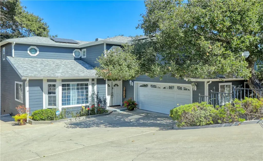 Welcome to 1001 Margarita Avenue, a lovely Grover Heights home nestled among the oaks! This turnkey home has been meticulously maintained and updated. Enter through double entry doors into the living room with vaulted ceilings which flows into the dining room, gorgeous kitchen and then family room, all with multiple exterior doors that beckon you out onto the large backyard deck among the oaks making this the perfect home for California Central Coast entertaining. You'll love the cozy wood-burning fireplace with gas starter for cool foggy evenings and kitchen with maple cabinets, gas cooktop, double oven and granite countertops. Updated bathrooms, hardwood maple flooring, and custom features make this home special. Upstairs you'll enjoy the primary suite retreat with it's own balcony deck perched in the oaks, soaking tub, separate shower, and quartz countertops. All bedrooms are spacious and one is the size of two+ bedrooms and could be used for a multitude of purposes, TV/Movie Room, Home Gym, Art Studio, Play Room, Home Office/Business. Storage areas and closets are abundant with extra storage in the unfinished area under the home and built-ins in the garage. Exterior deck refurbished in 2021. Hard wood floors sanded and polished, a three day process, in 2020. New Carpet installed in 2024. Solar System is owned and installed including Solar Battery. New roof, gutters installed in 2020, just before solar photovoltaic system installation. House exterior and interior freshly painted in 2021. Enjoy the coveted Mediterranean climate and figs, olives, loquats and pomegranates a