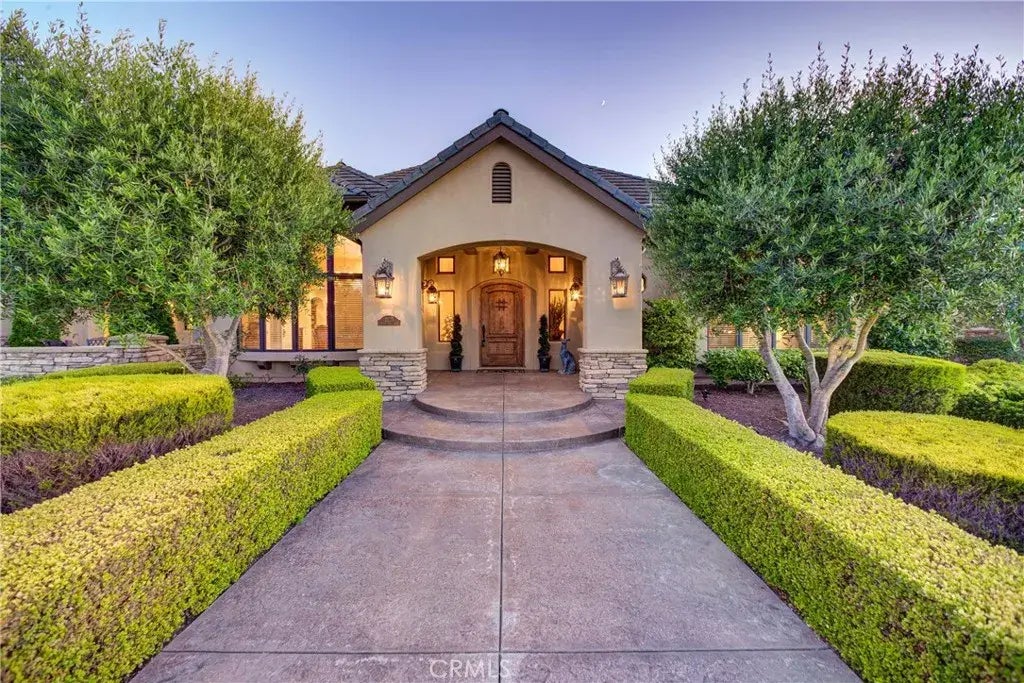 Central Coast luxury at its finest. Welcome to a private estate where elegance, comfort, and craftsmanship come together on Californias stunning Central Coast. Nestled in one of Arroyo Grandes most desirable enclaves, this single-level custom home by renowned builder Ron Chappell is surrounded by lush, meticulously landscaped grounds and designed for elevated livingindoors and out. Step inside to soaring 12 coffered ceilings, rich alder wood cabinetry and built-ins, and a spacious, functional layout ideal for both entertaining and everyday comfort. The chefs kitchen features Sub-Zero and Wolf appliances, a 6-burner gas range with griddle, double ovens, wine fridge, cabinet-faced refrigerator, dishwasher, warming drawer, walk-in pantry, and butlers pantry. The luxurious primary suite offers dual walk-in closets with custom organizers and a spa-like en suite bath with a jetted tub, oversized travertine walk-in shower with bench and dual showerheads, private toilet room with bidet, and a dedicated tankless water heater. A second guest suite with private bath provides comfort for visiting family or friends. A dedicated media room is ideal for movie nights and could serve as a fifth bedroom if needed. Additional interior highlights include engineered hardwood flooring throughout, whole-house audio system, two gas fireplaces with remote start, central heating and air conditioning, central vacuum, intercom system, and smart home wiring. The attached 2-car garage is complemented by a detached passthrough 2-car garage with shop space. A circular driveway enhances curb appeal and pro