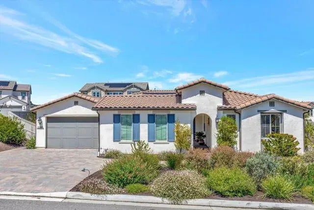 Grand one-story home in the desired Harmony Grove Village community. This Whittingham neighborhood home has over $200,000 in upgrades and boasts 3,183 square feet, 3 total bedrooms, 3.5 bathrooms, private guest suite w/ private entry & private bathroom, upgraded flooring throughout, California Room, extensive pavers, owned solar, tankless water heater, whole house water softener, filtered drinking water, expansive landscaping, three car garage, courtyard, stacking door system, and grand open space living area. Massive open concept space includes sliding door to front courtyard, upgraded flooring and recessed lighting. Eight-foot stacking door system opens the living space seamlessly to the California Room. Formal area by the front courtyard has an electric fireplace and can be used as a dining or lounging space. Master bedroom includes upper & lower storage cabinets, sliding door to exterior, upgraded flooring, and recessed lighting. Large master bathroom boasts separated dual sinks w/ extensive counter space, upgraded flooring, floating mirrors, deep soaking tub, walk-in floor-to-ceiling tile shower w/ seating bench, shower landing, recessed lighting, and spacious walk-in closet w/ mirrored doors that opens to the laundry room. Laundry room has big basin sink, extended upper storage cabinets, lower storage cabinets, counter space, upgraded flooring, and recessed lighting. Beautiful backyard includes California Room w/ fireplace, TV w/ mount, & recessed lighting, dual patios w/ pavers, lush green lawn, and spacious side yard w/ greenhouse. The thoughtful landscaping not onl