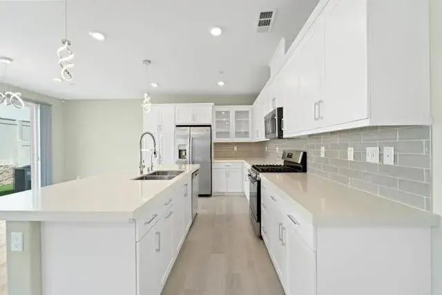 Welcome to Your New Home! This meticulously maintained residence offers over $100,000 in upgrades, blending modern luxury with practical features for comfortable living. This home truly has it allluxury, functionality, and a fantastic location. The home also comes with paid-off, owned solar panels, ensuring youll enjoy zero electricity bills. Upon entering, you are greeted with an open, airy layout. The home features four spacious bedrooms and three full bathrooms. Conveniently located on the ground floor is a bedroom and a full bath, ideal for guests or multigenerational living. The interior showcases high-end finishes throughout, including luxury vinyl plank flooring and stunning 3 ft x 2 ft marble tile in all bathrooms and the primary bedroom en-suite. The gourmet kitchen seamlessly flows into the living area, enhanced by automatic remote-controlled blinds that provide both style and convenience. The primary suite and 2 additional bedrooms as well as the separate laundry room are upstairs, adding to the home's practicality and convenience. Outside, enjoy the backyard, which boasts a high vinyl fence for privacy and double sliding doors that open up to a perfect space for entertaining. The community offers access to two parks & it's location ensures both ease of commute and convenient living. Dont miss the opportunity to make it yours!
