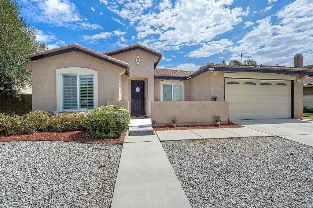 Welcome to this lovely Spanish-style home, beautifully landscaped with drought-tolerant plants featuring a majestic olive tree. As you approach the property you're greeted by a sunny patio that invites you to relax and enjoy the outdoors. This lovingly maintained residence boasts an open floor plan allowing for a seamless flow between spaces. Each window is adorned with custom shades providing both privacy and natural light. The expansive living room and dining area provides the perfect setting for hosting gatherings and parties. The master bedroom is a true retreat, complete with a generous walk-in closet and on-suite bathroom that offers comfort and convenience. The kitchen is a chef's dream, featuring a spacious walk-in pantry, ample counter space, and cabinets, along with an island that comfortably seats three. A dedicated computer desk area adds functionality to this heart of the home. Additionally, the house includes a versatile bonus room that can serve as a home office or an extra guest room, providing flexibility to suit your needs. Enhanced security features ensure peace of mind for you and your loved ones. Step outside to discover a spacious backyard with a large concrete deck, ideal for outdoor barbecues and entertaining. This beautiful home combines style, comfort, and practicality, making it a perfect sanctuary for modern living. Don't miss the opportunity to make it yours! Best of all it has new solar system.