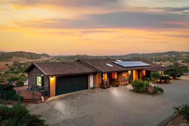 CUSTOM BUILT 4 BEDROOM, 3 BATH SINGLE STORY VIEW HOME ON 2 ACRES WITH A HUGE DRIVE THROUGH WORKSHOP/6 CAR GARAGE AND THIS HOME IS LOADED, INCLUDING PAID FOR SOLAR, SPACIOUS LIVING ROOM WITH EXPOSED WOOD CEILINGS AND FIREPLACE WITH INSERT, UPDATED KITCHEN WITH GRANITE COUNTERS AND BREAKFAST BAR, DUAL PANE WINDOWS AND SLIDERS, WOOD LAMINATE FLOORING AND TRAVERTINE FLOORING, RECESSED LIGHTING, FORCED A/C AND HEAT, LARGE PRIMARY SUITE WITH WALK IN CLOSET, PRIMARY BATHROOM WITH DUAL VANITY AND WALK IN TILED SHOWER, STUNNING VIEWS, HUGE COMPOSITE DECK OFF OF THE BACK OF THE HOME, BUILT IN BBQ, COVERED PATIO, GATED CIRCULAR DRIVEWAY WITH LOADS OF EXTRA PARKING, ATTACHED 2 CAR GARAGE AND A 1250 SQ FT WORKSHOP WITH 13 FOOT CEILINGS WITH PROFESSIONAL CAR LIFT THAT WILL EASILY FIT 6 CARS ALONG WITH DRIVE THROUGH ROLL UP DOORS AND MUCH MORE.