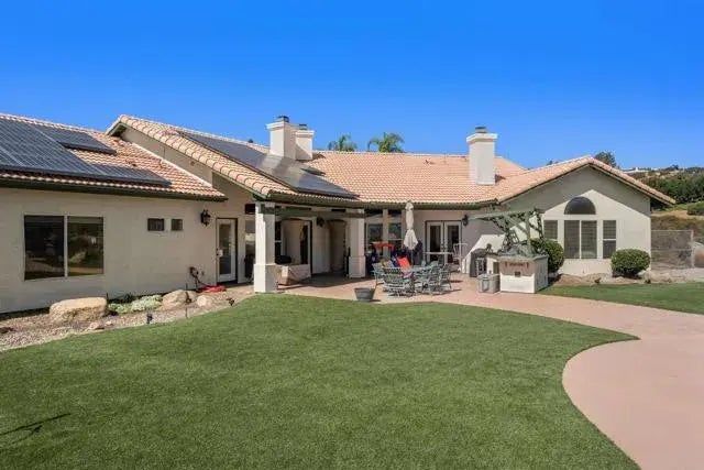 GORGEOUS SINGLE STORY VIEW HOME - ACCESS THROUGH PALO VERDE RANCH WITHOUT THE HOA FEE - PAID SOLAR / OWNED - LARGE KITCHEN WITH CENTER ISLAND - QUARTZ COUNTERTOPS - WHITE CABINETRY - PANTRY - EAT-IN NOOK - STAINLESS STEEL APPLIANCES - THREE FIREPLACES - LARGE MASTER WITH SITTING AREA - WALK-IN CLOSET - REMODELED WITH WHITE CABINETS AND QUARTZ COUNTERS - SEPARATE SPA TUB AND SHOWER - HOME FEATURES A SECOND SUITE WITH EN SUITE FULL BATH - 5TH BEDROOM USED AS AN OFFICE/PLAY ROOM - FABULOUS BACKYARD WITH BUILT-IN BBQ AREA, POOL AND SPA WITH GORGEOUS VIEWS - ARTIFICIAL TURF FOR LOW MAINTENANCE, FRUIT TREES, 4 CAR GARAGE PLUS WORKSHOP AREA