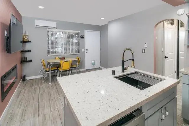 Step into this impeccably remodeled ground-floor condo in the convenient VA approved Via Serena community of San Ysidro. This extensively remodeled condo instantly feels like home with its thoughtful, high-end finishes, making it a coveted find in the complex. One of the best features of this home is its spacious, upgraded kitchenlarger than what youd expect. The kitchen features a central island with bar seating, perfect for casual meals or entertaining. It comes fully equipped with modern appliances, including a dishwasher, and gas range making it an inviting, functional space to cook and enjoy. The newly created private bedroom area offers a smart, functional design that transforms the space into more than just a studio. A split air conditioning system ensures year-round comfort, while the updated bathroom features a walk-in, glass door shower, stylish tilework, pebble flooring, plus a rainfall showerhead for that extra touch of class. The living area is equally inviting, featuring a new electric fireplace for a cozy touch, and the patio has been creatively designed to double as a guest areagreat for those who value versatility. With extra storage inside and at your dedicated parking spot, this home is as practical as it is beautiful. The complex is fenced and offers controlled access, ensuring a secure environment, and includes two swimming pools and a playground for residents to enjoy. Located just minutes from I-5, shopping and ideal for cross-border access, this home is perfect for anyone seeking convenience without compromising on style. The HOA includes water, addi