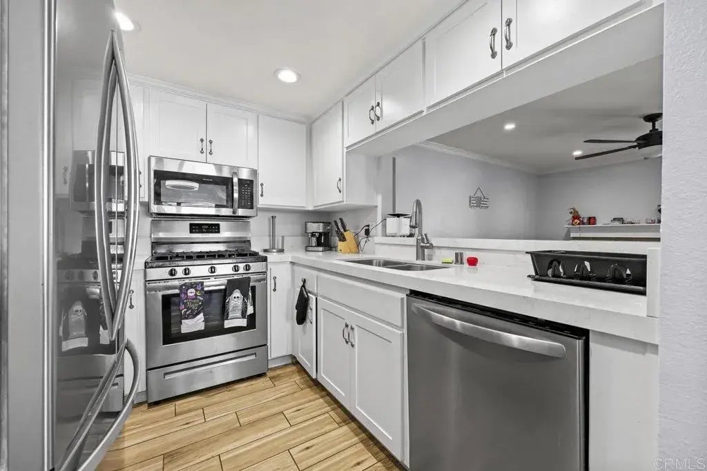 This beautifully upgraded ground floor corner unit is ready to welcome you home! With no stairs involved, it's perfect for easy accessibility. Recent updates like new kitchen countertops, windows, shutters, fixtures, and more make this space feel both modern and serene. Enjoy meals at the breakfast counter or relax on your private patio. The spacious primary suite features a double-sink vanity and a walk-in shower with elegant tile detailing. Conveniently located near the community pool and spa, ideal for a refreshing dip or a relaxing soak. Outdoor enthusiasts will love the community amenities, including pools, playgrounds, scenic trails, and a lake for boat rides. Plus, a VA loan assumption is available for eligible VA buyers. This home offers an incredible lifestyle and a fantastic vibe!