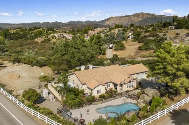 Welcome to this stunning one story home nestled in the hills of Alpine. This beautiful property boasts 2463 sq ft of living space and sits on a 2.12-acre lot and 2 car garage. As you step inside, youll be greeted by a spacious open floor plan with high ceilings and abundant natural light. Gorgeous living room opens a spacious dining room area. The gourmet kitchen is a chefs dream, featuring granite and tile countertops, stainless steel appliances (extra-large Sub-Zero Refrigerator, 2 Convection Ovens and 5 gas burner stove) and a large island with seating. The family room has an inviting fireplace and overlooks the massive yard. The primary suite offers a peaceful retreat featuring walk-in closet and a luxurious bathroom with a soaking tub and separate shower with dual Fireplace to enjoy. Outside, enjoy the well-maintained front yard which includes a pool with waterfall and spa. The spacious back yard you can enjoy entertaining or relaxing with room to roam and play. Wander through the orchard which includes grapes, peaches, tangerines, lemons, orange, grapefruit, pomegranates, apricots and green apples. Located in a desirable neighborhood, this home may have a possibility to build a second home. Dont miss this opportunity to make this exceptional property your new home! Seller will pay off the solar.