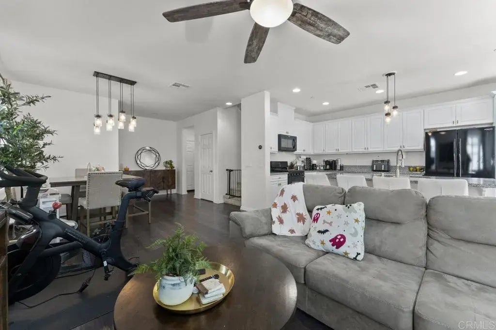 This immaculate three-bedroom, 2.5 bathroom townhome truly resembles a model home. The property is situated in the picturesque mountains of Lakeside, offering a serene and scenic environment. Home features stunning granite countertops paired with beautifully crafted cabinets adding elegance and functionality. The home boasts gorgeous hardwood floors that extend throughout the entire lower level, adding warmth and sophistication to the living space. The spacious downstairs area is ideal for entertaining, providing a great space for gatherings and socializing. Home includes a versatile loft space, perfect for a home office, play area, or movie night. The abundance of natural lighting that fills the entire home, creates a warm and inviting atmosphere. Home features a spacious master bedroom that includes a private en suite bathroom, providing a comfortable and convenient retreat. Plantation shutters adorn every window, while the property is equipped with solar panels, Telsa battery and EV charging station. As you ascend the stairs, you'll notice a striking wooden accent wall that adds charm and character to the home's interior. The exterior of the home has been freshly painted, enhancing its curb appeal. There is a playground within steps of the home, perfect for families. Located in a wonderful neighborhood, this home is conveniently close to freeways and amenities.
