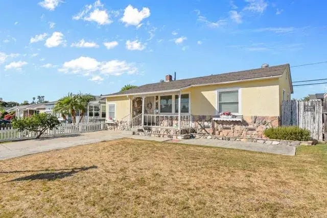 PRICE IMPROVEMENT! Cute older home in the "College streets" neighborhood of southwest La Mesa. The home needs some TLC, with the original hardwood flooring in some rooms, the kitchen may be original, with vinyl flooring and a little breakfast nook by the window. The windows are newer double-pane vinyl, tilt-in for most rooms. Ceiling fans in bedrooms and dining area. The garage was converted to a third bedroom, with permits per sellers. The flooring in this room is carpet. Laundry room is located within the former garage. Great location, spacious backyard with a covered porch, patio slab, and storage shed. Two fruit trees with room for more. There's also a covered front porch, reminiscent of the days when people sat out after dinner and got to know their neighbors! This home has a lot of potential, it may be a great candidate for an FHA 203K loan!