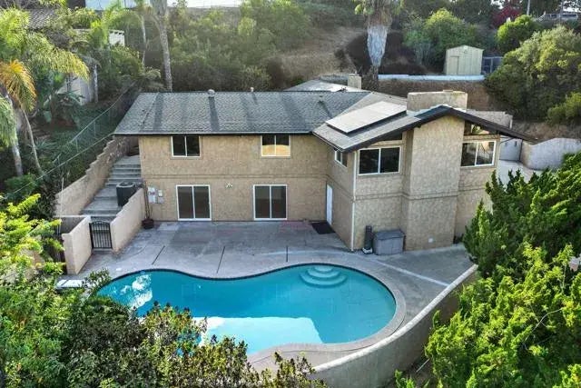 Enjoy the privacy of this private custom Mt Helix home nestled up on the hill. This spacious living areas including 2 very large living rooms with vaulted ceilings along with a primary bedroom, primary bathroom, and another bedroom on the main floor. The lower level offers its own private entrance, another large bedroom with its own bathroom, along with another bedroom and living area. This floorplan has great potential to have multi-generational living or 2 different living areas. In addition to the large living spaces, there's a beautiful, big pool along with a large owned Solar System. This one is a diamond in the rough and priced to sell!