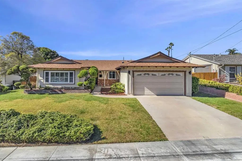 SINGLE STORY 4 Bedroom 2 Bathroom 2 Car Garage home on elevated lot for privacy! Lovingly maintained by long-term ownership. Newer electrical panel wired for CAR Charging in Garage! Separate Family Room. Sunny eat-in Kitchen with custom cabinetry. Large Bedrooms, two with built-in shelves, one room with drawers and a built-in desk including a drop-down sewing machine for crafting, (which allows for efficient desk space when machine is put away), Perfect area for your remote Office. Central heating and Air Conditioning. Spacious back yard with large covered stand alone patio with beautiful Flagstone is the perfect place for entertaining. Storage Shed on side yard. Some improvements are; dual paned windows, updated Kitchen & Bathrooms, walk in tile shower, plantation shutters & 2023 water heater. & electric panel. Washer, Dryer and Refrigerator included. Excellent location with easy access to Highways 805 & 5. Hilltop Schools.