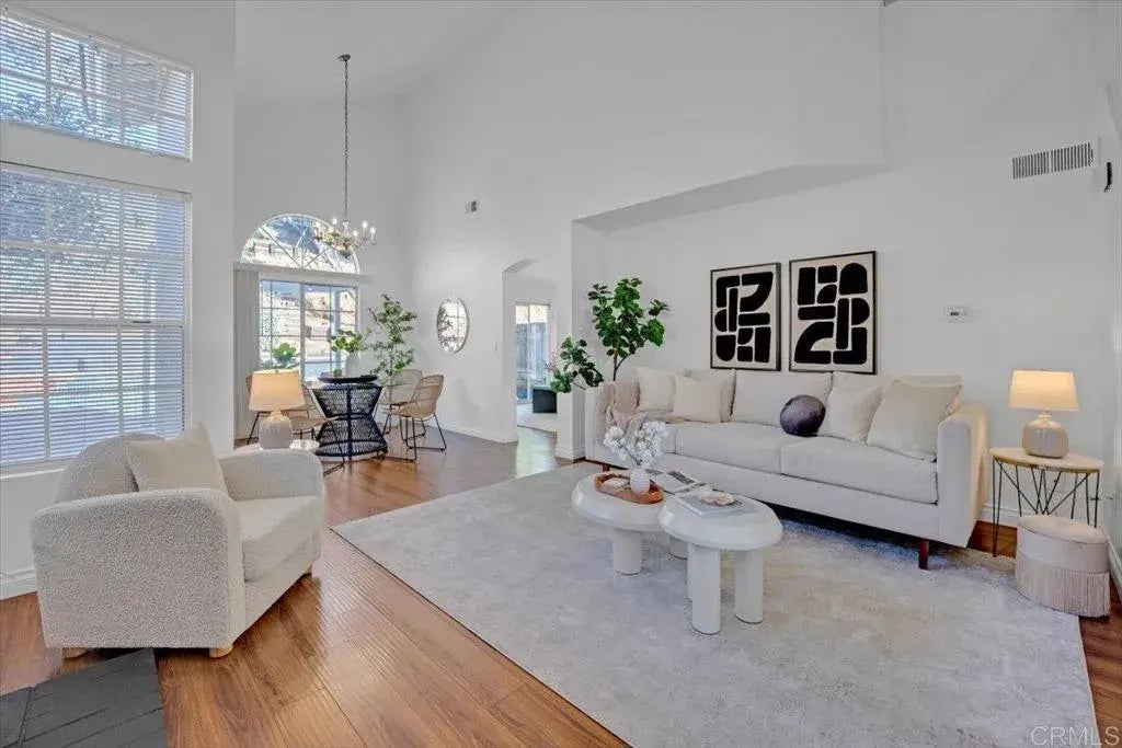 This cozy home is a two-story, 3 bedroom, 3 bathroom that spans across 1444 square feet. When you walk through the front door, you are greeted by a beautiful brick fireplace, high ceiling spacious living room, and dining room. As you continue to move throughout downstairs, you will find the charming kitchen and family room that look out onto the tranquil backyard. Upstairs, you will find all three bedrooms and a full bath. The master bedroom also consists of a luxurious walk in closet. When you step outside, the pool and jacuzzi, making this back yard a serene escape. This home also consists of a two car garage, and spacious driveway. Nestled into a beautiful neighborhood, this home is centrally located in Rancho San Diego. It sits within walking distance to both Rancho San Diego Elementary, and Hillsdale Middle School; a five minute drive to Valhalla High School, and Cuyamaca College; and a five minute drive to the freeway. Welcome to this Rancho San Diego gem.