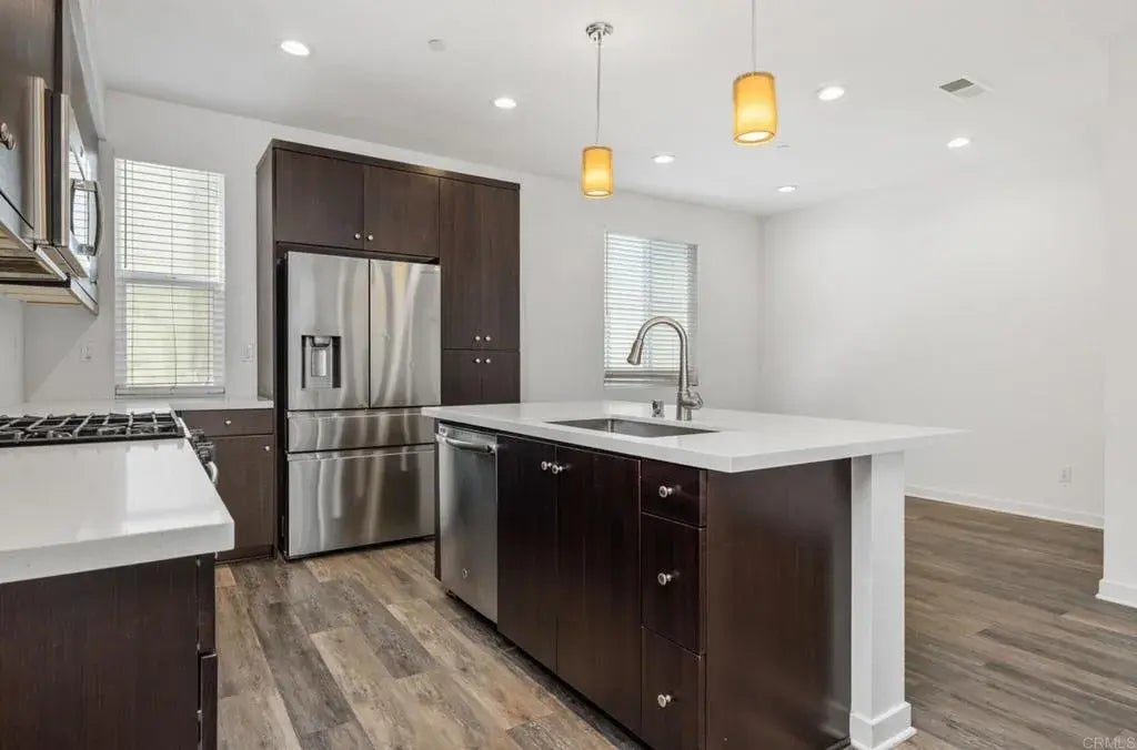 Welcome to this stunning tri-level condo located in the highly desirable, newer development of Millenia in East Chula Vista. Freshly painted and move in ready, this contemporary 3-bedroom, 3-bathroom home boasts a spacious and versatile floor plan, perfect for modern living. The open-concept main level is filled with natural light and offers seamless indoor-outdoor flow to a private balcony, where you can take in breathtaking views of the surrounding area. The gourmet kitchen is equipped with sleek stainless steel appliances, quartz countertops, and ample cabinet space, making it a chefs dream. Each bedroom is generously sized, with the primary suite offering a serene retreat complete with a walk-in closet and spa-like en-suite bathroom. The Millenia community is rich with amenities, including parks, trails, and convenient access to shopping, dining, and top-rated schools. With its prime location, stylish design, and panoramic views, this tri-level condo is the perfect blend of luxury and convenience in the heart of East Chula Vista. Dont miss the opportunity to call this exceptional property home! Seller may consider a credit for carpet! Lease considered.