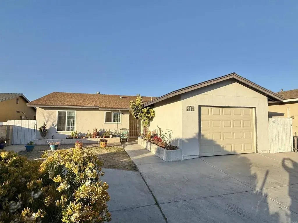 This beautifully located single-story home in Otay Mesa, California, offers a perfect blend of comfort, functionality, and convenience. Its open-concept layout is ideal for modern living, with a seamless flow between the kitchen and living spaces that encourages gatherings and connection. Exterior: A spacious driveway leads to an attached garage, offering ample parking and storage. The front yard is thoughtfully designed with low-maintenance landscaping and colorful potted plants for added charm. The backyard is a standout feature, complete with a covered patio, a paved entertainment area, and garden beds ready for personalization. Interior: Living Room: Warm and inviting, featuring recessed lighting, vinyl flooring, and a cozy ambiance perfect for relaxation or hosting guests. Open-Concept Kitchen: Thoughtfully designed for both functionality and style, flowing seamlessly into the main living area. Location: Ideally situated close to major freeways, ensuring easy commuting and travel. Just a short drive to the beach, perfect for enjoying the best of Southern California living. Located near stores, dining, and daily conveniences, making errands quick and easy. Offers proximity to the Mexican border, ideal for cross-border travel and cultural experiences. This home is perfect for anyone seeking a combination of comfort, accessibility, and location, making it a versatile option for various lifestyles.