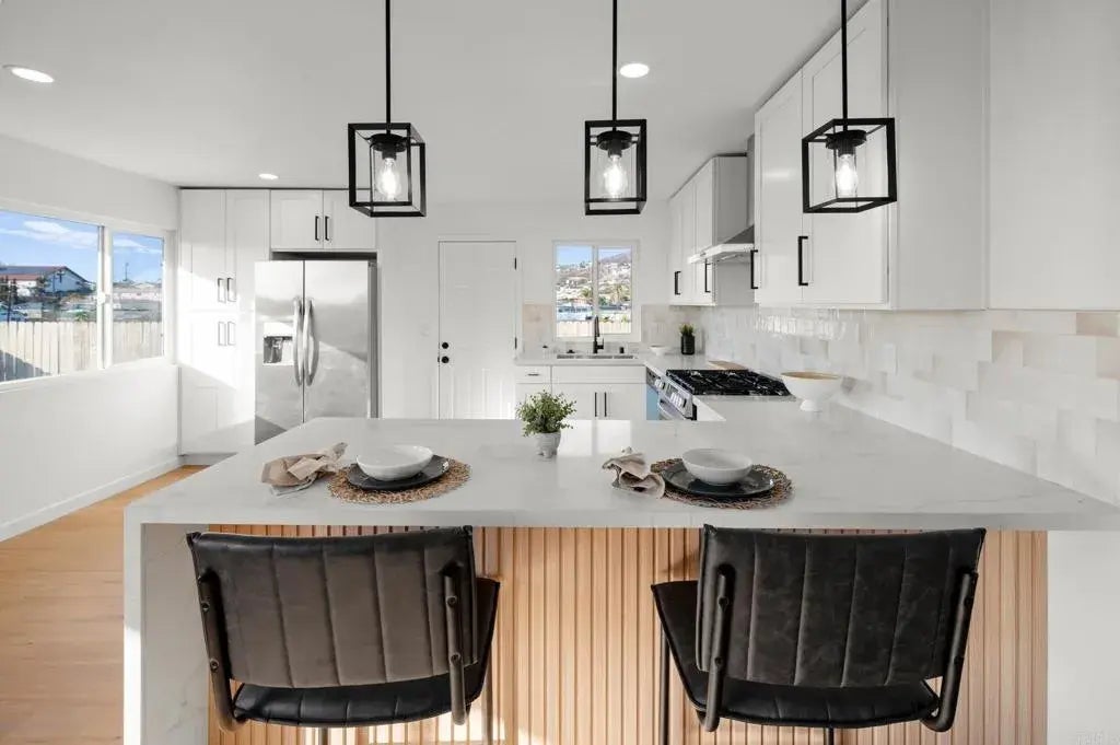 Welcome to this beautifully updated 3-bedroom, 2-bath single-family home, offering modern upgrades and stylish finishes throughout. Step into a brand-new kitchen featuring elegant white cabinets and quartz countertops, perfect for cooking and entertaining. The home boasts new flooring throughout and fully remodeled bathrooms with gold finishes and new roof! Enjoy the convenience of a 2-car garage and an expansive back lot with alley access, providing sizable parking and endless possibilities. The freshly landscaped yard with new sod and decorative pebble creates an inviting outdoor space. Situated above street level offers beautiful views to enjoy! Turn-key - schedule your showing today!