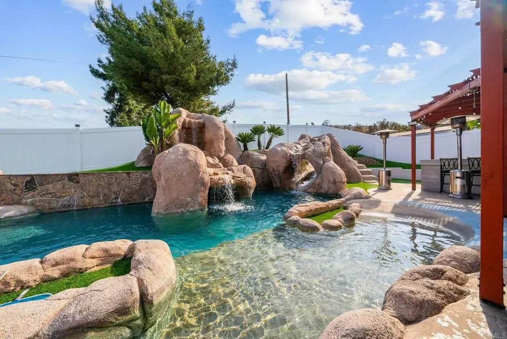 Welcome to this stunning 3-bedroom, 2.5-bathroom home, complete with two versatile bonus rooms and an incredible backyard designed for year-round enjoyment. This home features an open and inviting floor plan with modern finishes, abundant natural light, and energy-efficient leased solar panels to help keep utility costs low. Whether youre looking for extra space for a home office, playroom, or gym, the bonus rooms offer endless possibilities to suit your needs. The kitchen features granite countertops, stainless steel appliances, and plenty of cabinet space. The adjoining dining and living areas provide a seamless flow, perfect for entertaining or relaxing with family. The primary suite offers a spacious layout, walk-in closet, and an en-suite bath with dual vanities. The additional bedrooms are generously sized, providing comfort and flexibility for any lifestyle. Step into your resort-style backyard oasis, where luxury meets fun! The expansive pool features a thrilling water slide, a hidden cave, and a relaxing jacuzzi, making it the ultimate outdoor retreat. Whether youre hosting summer pool parties or unwinding after a long day, this backyard offers something for everyone. The turf landscaping ensures a lush, green yard with minimal maintenance, giving you more time to enjoy the incredible outdoor space. For those who love to entertain, the built-in BBQ and fire pit area create the perfect setting for gatherings. Enjoy grilling with friends, roasting marshmallows under the stars, or simply soaking in the peaceful ambiance of your private paradise. With ample patio space