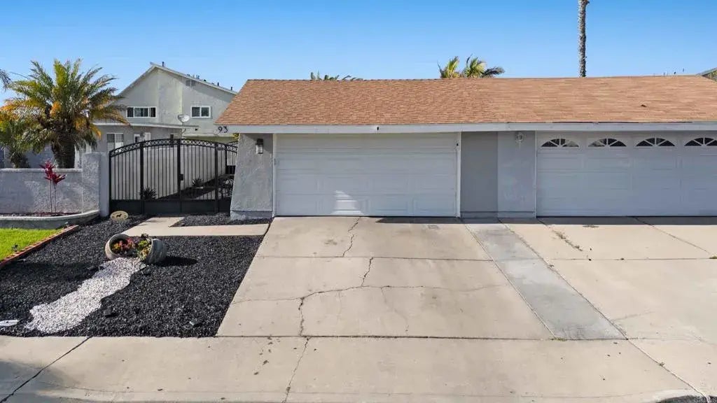 Nestled in the heart of West Chula Vista, this fantastic twin home offers the ideal blend of style and convenience with no HOA fees. Featuring 3 bedrooms and 2 bathrooms, and 1083 square feet, of living space, this home also includes a 2-car garage and driveway. The open concept floor plan boasts generously sized bedrooms and a kitchen equipped with granite countertops, stainless steel appliances, recessed lighting, and a surround sound system for your enjoyment. Stay cool with the comfort of AC during the warmer months. The spacious yard, adorned with stamped concrete, is perfect for entertaining and easy to maintain. A custom-made iron front fence adds a touch of privacy while enhancing curb appeal.