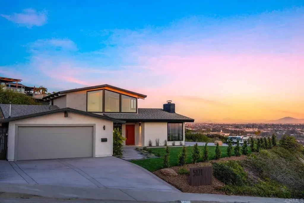 Step into a luxurious Mid-Century Modern retreat perched atop the Pacifica Community in Pacific Beach. Offering breathtaking 360-degree views from every angle, this impeccably designed two-story home seamlessly blends modern sophistication with timeless architectural charm.