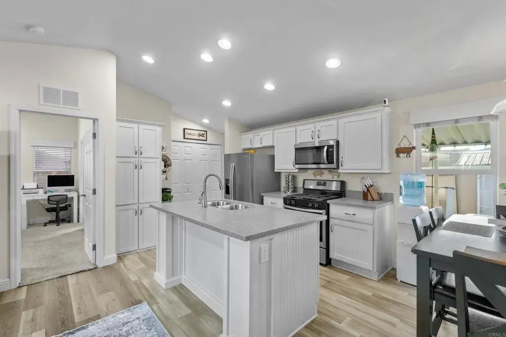 Financing available. 3 bed, 2 bath manufactured home in Brentwood Mobile Home Park. Features include a spacious living area, updated kitchen, and in-unit laundry. The home is approximately 24' x 48' and is registered with the California HCD. Current base rent is $1,350 and utilities are paid through the park. In April owner paid $185.20 for Electric, Gas, Sewer, Water, and Trash for March usage. Base rent subject to change. Park Amenities: Brentwood Mobile Home Park offers a swimming pool, spa, clubhouse, laundry facilities, and off-street parking. The park is pet-friendly with restrictions and is located within walking distance to shopping centers and public transportation.? Ultra clean park. Neighborhood: Situated in Chula Vista's Harborside neighborhood, the park is near the Palomar Street Trolley Station and several parks. The area is experiencing growth with developments like the Gaylord Pacific Resort and Convention Center, expected to open in 2025, bringing new jobs and amenities to the region. This home will increase in value once the Gaylord pacific project is built! Chula Vista IS the new hot spot in San Diego! Once we begin showing this home - it will sell fast. This area is a goldmine and in 3 years, you're going to wish you bought here.