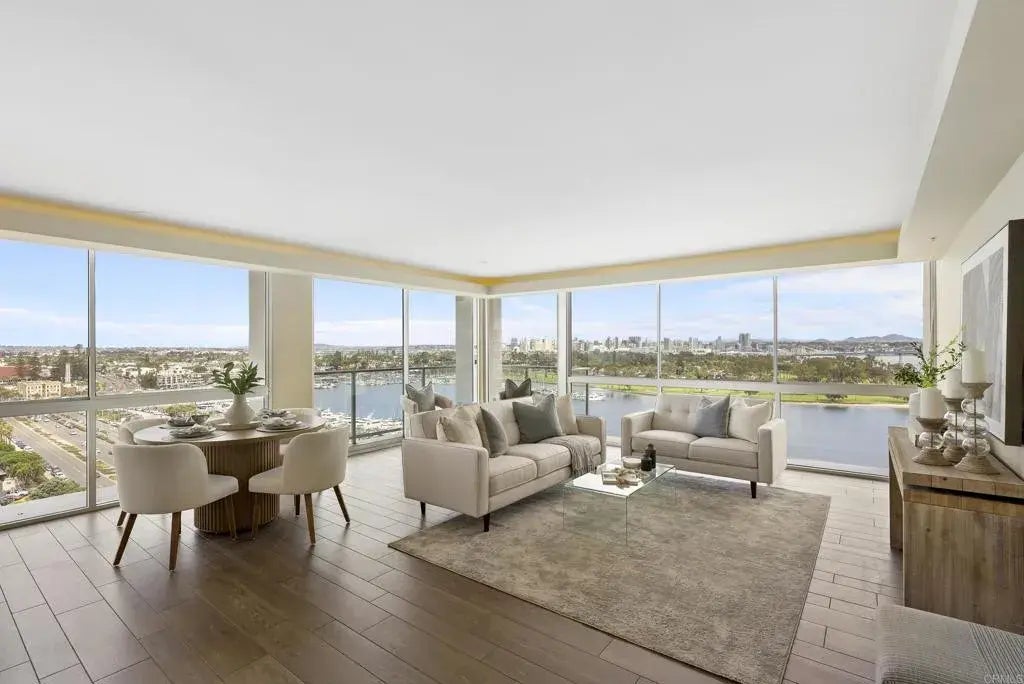 A Generational Opportunity Certain to Inspire. Welcome to this stunning 15th-floor corner unit in the highly sought-after El Encanto tower. This beautifully appointed 2-bedroom, 2-bathroom condo offers 180 degree breathtaking northern OCEAN AND BAY VIEWS. Sold unfurnished. Unit 1504 has been fully and thoughtfully renovated with classic and timeless elegance throughout. List of renovations: Modern tile Floor, Balcony pushed out, recessed lighting throughout and raised ceilings, New HVAC in 2015, renovated kitchen counters and cabinets, new stove 20225, new interior doors, new interior paint. Full size stackable washer/dryer. The gorgeous chefs kitchen combines elegant design. Crisp white cabinetry complemented by a soft gray island base, creating a harmonious coastal palette. The kitchen features high-end stainless steel appliances, along with sleek quartz countertops that offer ample prep space. Floor-to-ceiling windows adorned with custom motorized roller shades. The open-concept layout creates a seamless flexible flow between the living and dining areasperfect for entertaining or unwinding as you take in serene sunsets. Both bathrooms have been beautifully remodeled, with the primary bath exuding spa-like sophistication. A soothing neutral palette, clean lines, and white cabinetry set a refined tone, complemented by expansive mirrored vanities. The luxurious walk-in shower is appointed with oversized tile, a frameless glass enclosure, and a stunning ribbon of ocean-hued mosaic tile that infuses coastal charm with contemporary elegance. Dual vanities and generous counter
