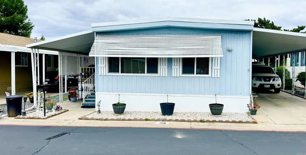 Welcome to Meadowbrook, Santees Premier 55+ gated community offering a scenic and resort like atmosphere. This charming, two bedroom two bathroom mobile home features numerous upgrades, including a new water heater recently resurfaced roof, and painted paneling. The home has a newer refrigerator, gas stove, dual pane windows, a backyard ramp and driveway ramp, 2 sheds and two outdoor sitting areas both covered-perfect for barbecuing and entertaining next to your own lemon and orange trees. Enjoy the benefits of the low registration fee. Located within walking distance to parks and Pickleball courts, and conveniently close to freeways and shopping centers, this home offers both comfort and accessibility. Meadowbrook offers a wealth of amenities, such as a sparkling pool, relaxing Jacuzzi, billiards and game rooms, library, and a vibrant clubhouse the clubhouse serves as the community, social hub, hosting events, such as potluck, bingo, craft days, yoga, sessions, and game nights fostering a warm and community minded environment. Dont miss the opportunity to make this delightful residence your new home in a friendly, active gated community designed for your comfort and enjoyment.