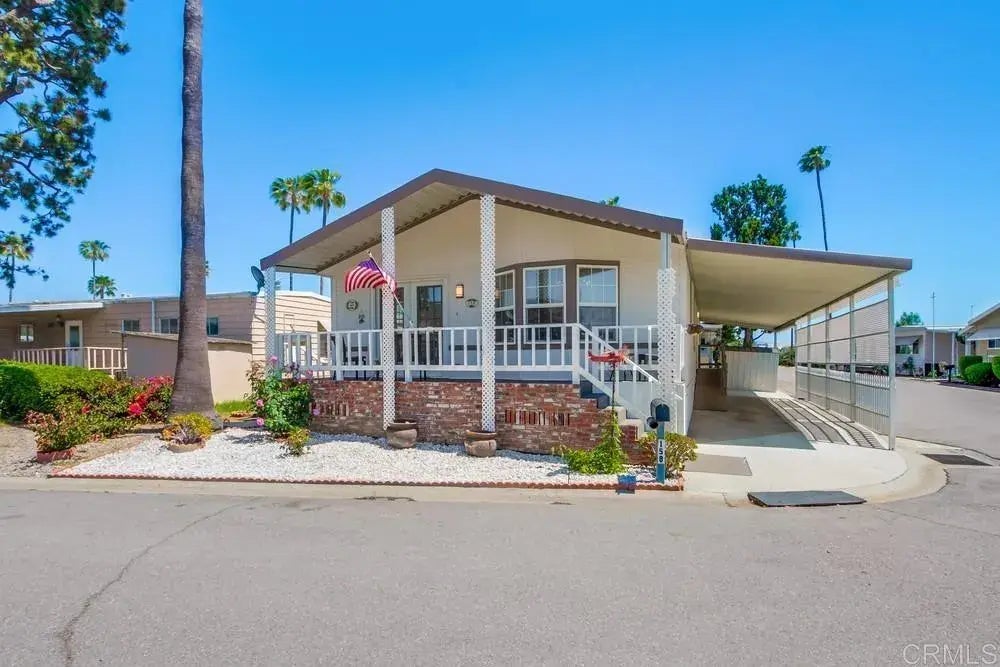 PRICE REDUCED! Stunning, beautifully-renovated manufactured home in premier 55+ Community. Rare corner lot with drive-through Driveway. All for under $300k! Step into comfort and style in this upgraded manufactured home that blends modern elegance with everyday ease and comfort. Nestled in one of the most desirable 55+ parks, this beautifully remodeled gem features an open floorplan, soaring vaulted ceilings, charming arched doorways, and sun-filled dormer windows that flood the space with natural light. From the moment you arrive, the welcoming front porch invites you to relax and soak in the local views and gentle breezes. Inside, the double-sided wood-burning fireplace with a wrap-around mantle creates the perfect cozy ambiance for relaxing or entertaining. The gourmet kitchen is a dream come true with brand-new stainless steel appliances, gas cooking, bay windows, Calcutta quartz countertops, and an eat-in dining space that offers a scenic view. The separate formal dining area flows effortlessly into the spacious family room, creating a seamless living experience. Youll love the extra-large laundry roomcomplete with near-new washer and dryerwhile the primary suite is a peaceful retreat featuring vaulted ceilings, a HUGE walk-in closet, Jacuzzi soaking tub, and a separate stall shower. The second bedroom is ideal for guests or a stylish home office, and the second bathroom boasts a walk-in shower with dual seating for ultimate comfort. Additional highlights include Central A/C, Smart Nest thermostat, Dual-pane windows, garden space and large storage shed. Convenient ramp