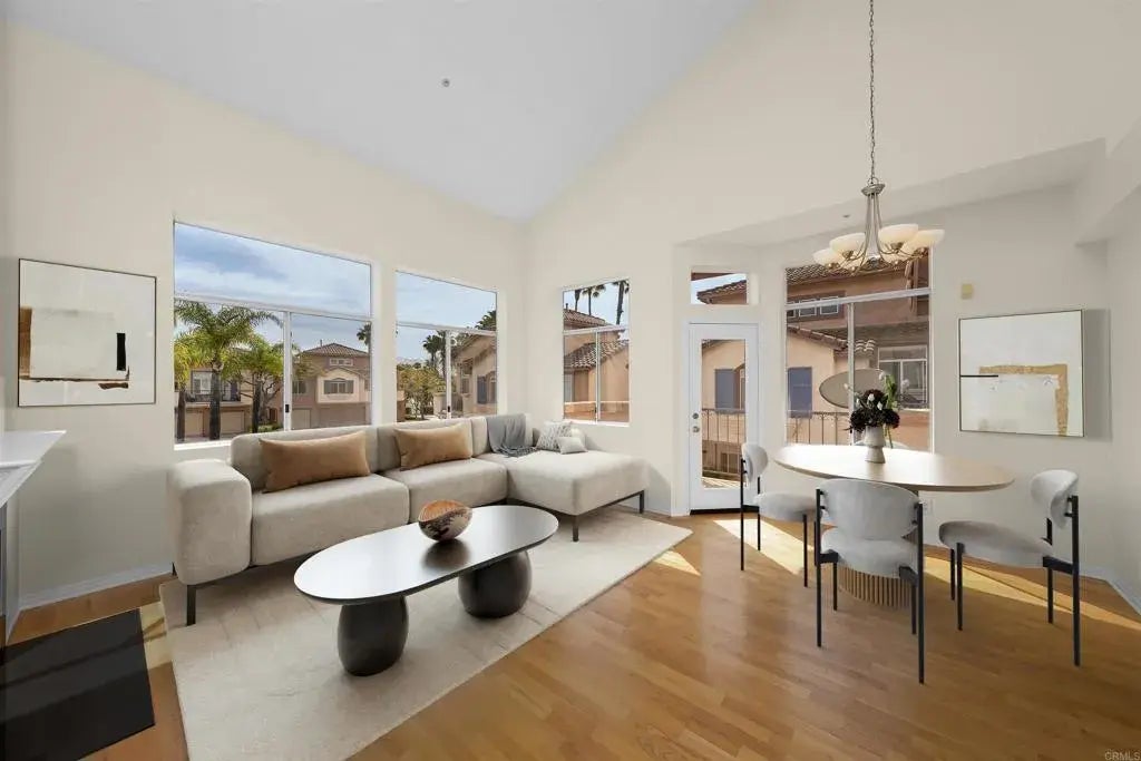 Welcome to this bright and spacious 2+ bed, 2 bath corner unit featuring a versatile loft that can easily serve as a third bedroom, home office, or bonus space. Ideally located right next to the pool, this home offers an open floorplan with soaring high ceilings, creating an airy and inviting atmosphere throughout. The living room is the heart of the home, complete with a cozy fireplace and tons of huge windows that flood the space with natural light. The adjacent kitchen boasts newer stainless steel appliances, plenty of cabinet space, and seamless flow into the dining and living areasperfect for both entertaining and everyday living. Step out onto your private balcony to relax or enjoy a morning coffee. The large primary bedroom features an ensuite bathroom and generous closet space, while the secondary bedroom and upstairs loft provide plenty of room for family, guests, or work-from-home flexibility. Additional highlights include a 1-car garage and a prime location close to schools, shopping, dining, and easy freeway access. Dont miss the opportunity to own this beautiful, light-filled home in a highly desirable community!