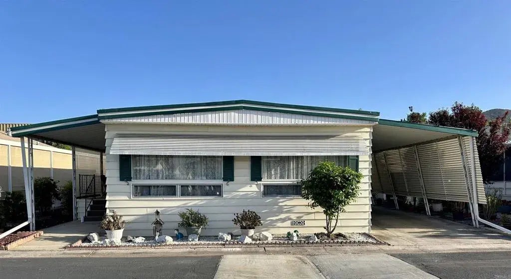 Welcome to Meadowbrook, Santees Premier Senior living mobile home park. This spacious 2 bedroom 2 bath home is move in ready. Newer vinyl flooring throughout, easy access from the sliding glass door to a large covered patio with an additional area perfect for barbecuing. The Primary bedroom features a large closet, lots of built-in storage space and an en suite with dual vanity. The large living room is perfect for entertaining and family get togethers. Meadowbrook has many amenities such as a sparkling pool, relaxing Jacuzzi, billiards and game rooms, library and a vibrant clubhouse. The clubhouse serves as the community social club, hosting events, like potluck, bingo, craft days, yoga, sessions, and game nights -fostering a warm and community minded-environment. Dont miss the opportunity to make this delightful residence your new home in a friendly active community design for your enjoyment!