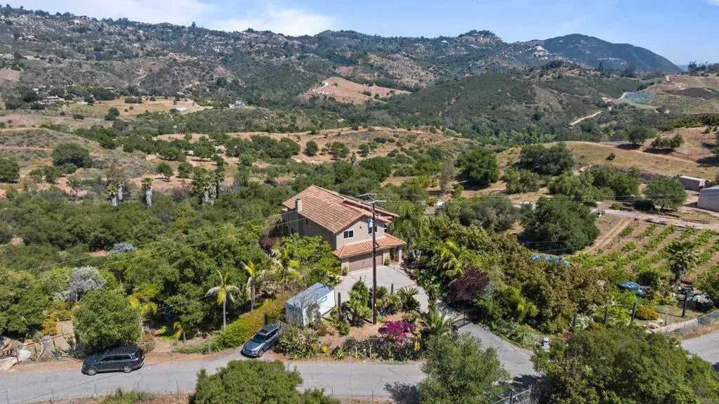 Welcome to your dream retreat! Nestled in the foothills of the Aqua Tibia and Santa Margarita Mountains, this stunning 3-bedroom, 2.5-bath home offers the perfect blend of elegance and tranquility. The spiral staircase sets the stage for sophisticated living, while the dedicated office provides a peaceful workspace. Step outside and find yourself immersed in a lush garden paradise, that has been lovingly planted and tended with over 6.5 acres of serene landscapes to explore. Savor the edible vegetation which includes a variety of herbs, 3 types of avocados, lemon, blood orange, red grapefruit, naval orange, plum, apricot, pomegranate, black berry, mulberry, table grapes and more! Are you a budding or experienced vigneron? Look no further! The onsite zinfandel vineyard and processing room will enable you to produce your own private label wine. Agricultual zoning, coupled with the well and water tank, provides an added opportunity to generate income from farming, and livestock. Imagine enjoying fruits and vegetables from your garden, raising chickens, and providing for your household needs by simply walking out your door and harvesting produce from your own backyard! Enjoy nearly 360-degree views from the various balconies, decks and patios. Meander along the pathway that winds through the expansive yard. Paid solar, close proximity to freeways, shopping, Temecula wineries & wedding venues, outdoor activities and so much more. Whether you're entertaining or unwinding, this property delivers opportunity and privacy in abundance. Make this breathtaking property yours today! The