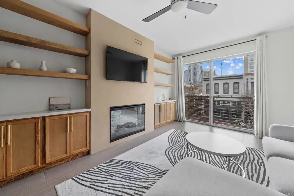 Welcome to urban living at its finest! Located in the vibrant Gaslamp Quarter, this modern and contemporary 1-bedroom condo at 445 Island Ave #321 is VA APPROVED and places you right in the center of all that downtown San Diego has to offerjust steps from world-class dining, shopping, nightlife, Petco Park, and the waterfront. Inside, youll find a sleek, open-concept layout with stylish finishes and a cozy fireplace that adds a warm touch to this chic space. The building offers resort-style amenities including a gym, pool on the same floor as the unit, and rare 3 parking spacesa true luxury in downtown living. Whether youre looking for a full-time residence or a weekend retreat, this turnkey unit offers the ultimate in convenience, comfort, and location. Dont miss your chance to own a piece of San Diegos iconic Gaslamp lifestyle.